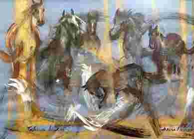 obraz akryl, pastel tabun koni
