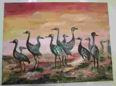 obraz akrylowy 30x40cm Strusie o zachodzie słońca