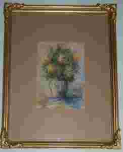 Przedmiotem aukcji jest obraz prezentujący wazon wypełniony kwiatami - autor nieznany ze względu na nieczytelny podpis.