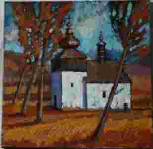 Obraz Cerkiew - akryl 40x40, E. Gałustow, OKAZJA