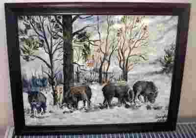OBRAZ - CZTERY DZIKI, OLEJ NA PŁÓTNIE POLECAM!