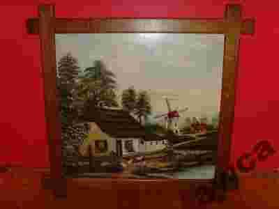 Obraz duży sygnowany wiejska gospoda