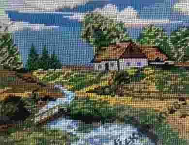 OBRAZ HAFT GOBELINOWY DOMEK W LECIE