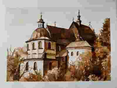 Obraz klasztor Dominikanów Lublin; akwarela + tusz
