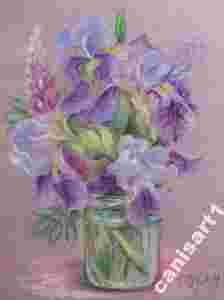 obraz KWIATY IRYSY W SZKLE bukiet pastel BCM