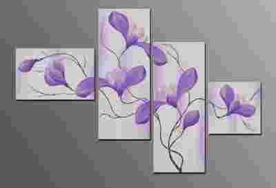 Obrazy są w odcieniach bieli z odrobinką fioletu,
