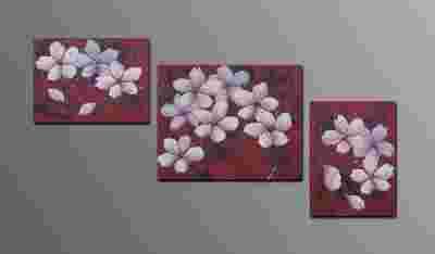 obraz malowany GAŁĄZKA, czerwień,czerń TRYPTYK