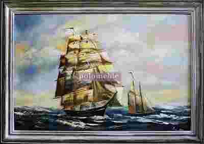 OBRAZ MALOWANY PEJZAŻ MARYNISTYKA STATKI ŻAGLOWCE