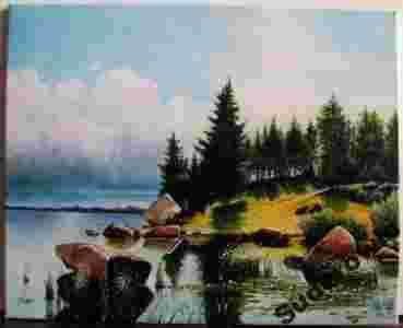 OBRAZ -- NA BRZEGU JEZIORA (50x40) -- Suder