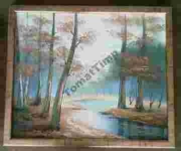 Obraz Olejny - drzewa nad rzeką - pejzaż