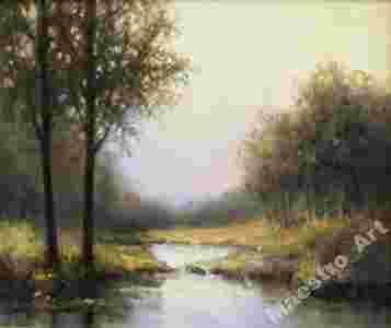 Pragniemy zaoferować Państwu kupno obrazu autorstwa Piotra Olbrychowskiego "Pejzaż". Na obrazie widzimy piękny pejzaż leśny i przecinającą las rzekę.