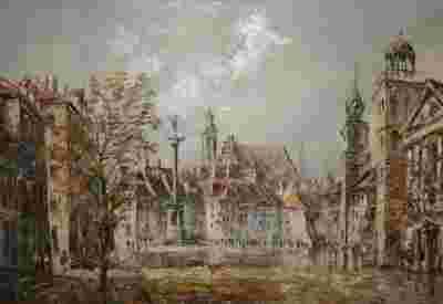 1981 - pejzaż miejski, techniki mieszane - Ratusz Gdański
