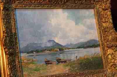 Obraz olejny z 1927r - Jezioro Chiemsee - E. Lang