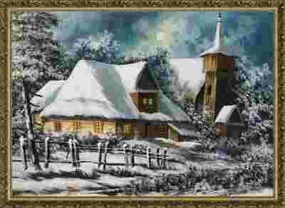 Obraz olejny - Zimowy zmierzch - 50x70 cm