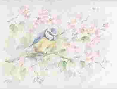 obraz ptak SIKORKA MODRA ptak AKWARELA