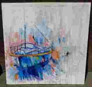 OBRAZ ręcznie malowany statek łódka 120x120 AKRYL