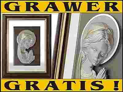 - Drewniana ramka, wewnątrz przeźroczysta szklana szyba, a na niej płaskorzeźba w kolorze matowego srebra ze złotymi dodatkami. Brzeg aureoli z błyszczącego srebra.