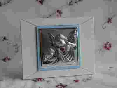 Obrazek wykonany z blachy srebrnej wzmocnionej blachą aluminiową.