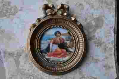 OBRAZEK Z PORCELANOWYM MEDALIONEM. RAMKA Z KOKARDĄ