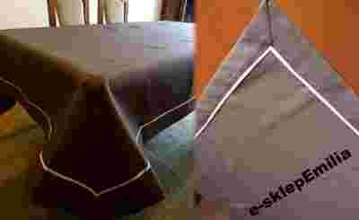 Elegancki obrus z tkaniny wizualnie przypominającej len, bardzo wysoka gramatura tkaniny.