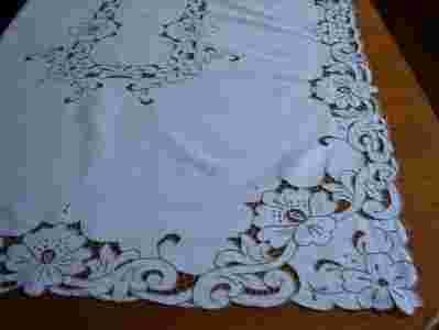 OBRUS Z BEŻOWYM HAFTEM RICHELIEU 182x100 cm