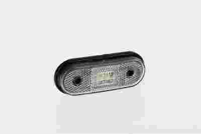 Lampa obrysowa biała LED uniwersalna z odblaskiem i zintegrowanym przewodem 2x0,75 mm. Zakres napięć płynny 12-30V DC - polaryzacja dowolna. Wyrób spełnia najwyższe normy jakościowe. Ekstremalnie małe zużycie energii elektrycznej przy napięciu 12V(0,04A)=0,5W a przy napięciu 24V(0,04A)=1W. Zakres temperatury pracy -40°C bis +100°C.