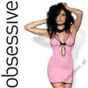 Zmysłowa haleczka w kolorze pastelowego różu, wykonana z elastycznego, lekko połyskującego materiału. Doskonale dopasowuje się do ciała eksponując kobiece wdzięki. Zmysłowy krój niesamowicie pobudza wyobraźnię. Pod biustem znajduje się seksowne wycięcie w kształcie łezki, obszyte delikatną, czarną falbanką. Drobna falbanka zdobi również brzegi miseczek, ramiączka oraz dół koszulki. Między miseczkami umieszczono czarną kokardę z tasiemki. Haleczka zmysłowo kusi oraz uwodzi. Do kompletu dołączono seksowne stringi.