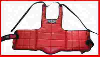 Ochraniacz tułowia MASTERS do sportów walki wykonany ze skóry syntetycznej. Ochraniacz posiada wygodne zapięcie, możliwość wygodnego dopasowania dzięki dwóm rzepom po bokach. Wymiary ochraniacza bez zapięcia: 40 x 84 x 4 cm; długość pasa z rzepem: 54 cm (dwa pasy po bokach do regulacji). Kolor: czerwony lub niebieski. Rozmiar uniwersalny