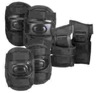 Czarne ochraniacze na kolana, łokcie i nadgarstki zapewnia maluszkowi doskonałą ochronę przed uderzeniami. Noszenie wkładki bezpieczeństwa daje dzieciom większą pewność podczas zabaw na rolkach , łyżwach itp