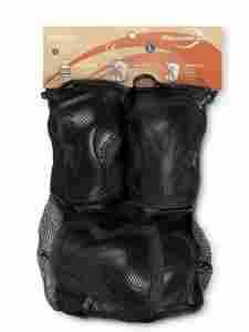 anatomicznie dopasowane, wykonane z włókna poliestrowego typu mesh, ochraniacze na nadgarstki, łokcie i kolana. Dzięki zastosowaniu tego typu materiału są bardzo wytrzymałe i oddychające. Doskonale zapobiegają otarciom.