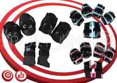 Komplet składa się z trzech części. Dwóch ochraniaczy na kolana, dwóch na łokcie oraz dwóch na nadgarstki.