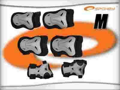 W zestawie ochraniacze na łokcie ( 2 sztuki ), kolana ( 2 sztuki ) i nadgarstki ( 2 sztuki ).