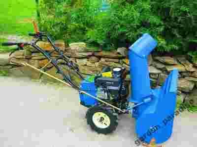 Odśnieżarka zamontowana jest na ciągniku o mocy 6.5KM i napędzana jest z wałka wyjścia mocy ciągnika. Posiada możliwość regulacji kąta wyrzutu śniegu. Całość maszyny wykonana z metalu ( odporna na lód) a nie z plastiku ( plastik pod wpływem mrozu staje się kruchy i jakiekolwiek uderzenie lodem wyłamuje go).