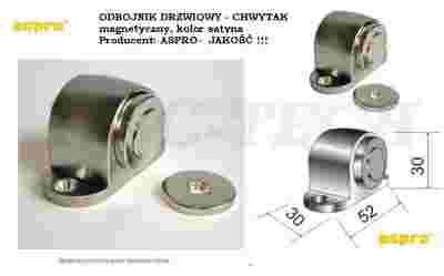 NOWY w oryginalnym opakowaniu odbojnik drzwiowy magnetyczny, wykonany estetycznie przez renomowanego producenta artykułów wykończenia wnętrz. Skutecznie chroni przed obijaniem ścian, mebli i innych elementów wykończeniowych a dodatkowo zapobiega samoczynnemu zamykaniu się drzwi !!! MONTAŻ banalny, odbojnik przykręcamy do podłogi, drugi niewielki okrągły element do drzwi- wkręty montażowe w komplecie. Niewielki rozmiar - solidne wykonanie. Wymiary schemat (patrz zdjęcie). Polecamy ten produkt- bardzo dobre przełożenie jakość/cena.