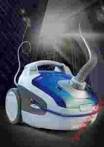 Odkurzacz o mocy silnika 2000 W, z automatycznym zwijaczem przewodu, zasięgiem pracy do 13 m, regulacją mocy, wskaźnikiem zapełnienia worka oraz z teleskopowymi rurami.