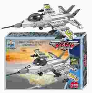 Zestaw 240 części różnej wielkości, łatwo wciskających się jeden w drugi, pozwoli młodym miłośnikom klocków zbudować swój własny wymarzony odrzutowiec!