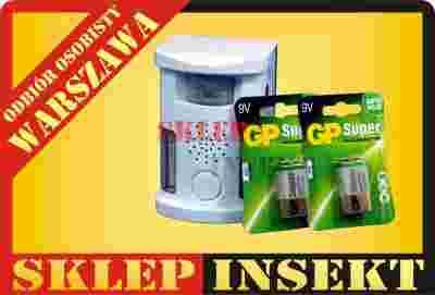 Wielofunkcyjny odstraszacz zwierząt na 70m2 w zestawie z bateriami 2x 9V