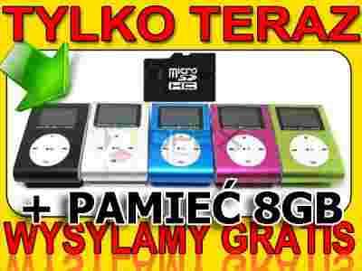 ODTWARZACZ MP3 KLIPS LCD KARTA 8GB GRATIS MICROSD