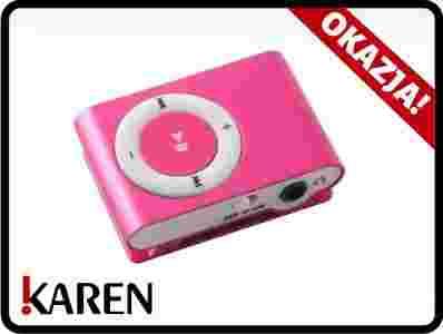 Odtwarzacz MP3 z klipsem różowy microSD GW24