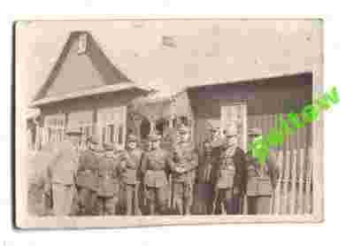Oficerowie na tle leśniczówki - Manewry