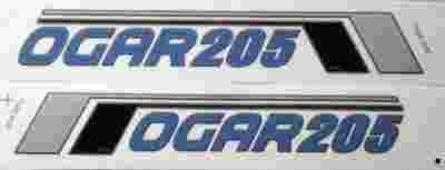 Ogar 205 naklejka srebrno-czarna niebieskie litery