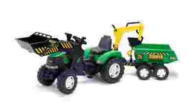 Traktor na pedałki przyczepą, ładowaczem i koparką Falk 1005W - kolor zielony