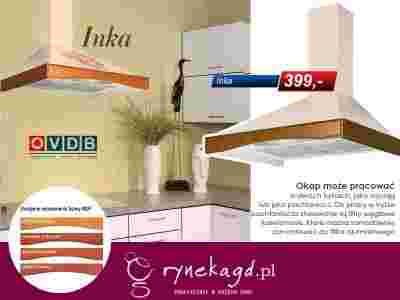 Okap promocyjny INKA to klasyczny okap w listwą MDF. Listwa ozdobna wykonana jest z MDF w czterech kolorach folii (jabłoń ciemna, wiśnia koreańska, olcha miodowa, czereśnia antyczna) idealnie dopasowanych do kolorów frontów kuchennych.