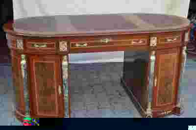 OKAZAŁE BIURKO Z OKUCIAMI Z MOSIĄDZU I MARMUREM.