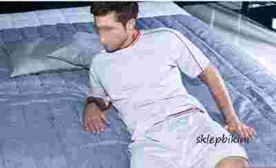 Piżama męska z krótkim rękawem wykonana z wysokogatunkowej bawełny. Koszulka formie t- shirta z krótkimi rękawem. Okrągłe wycięcie pod szyją wykończono ściągaczem, wzdłuż rękawów dodatkowo lamówka. Szorty krótkie w pasie szeroka guma po bokach lamówki. Sportowa piżama dla Panów ceniących swobodę i komfort.