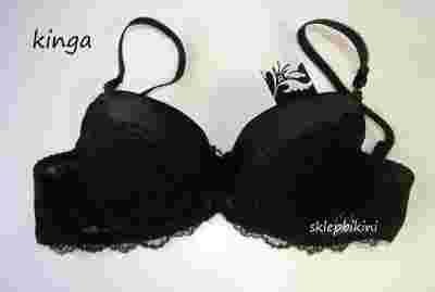 Biustonosz typu push up. Miseczki pokryte koronką, w górnej linii gładka satyna, boczki z delikatnego tiulu. Odpinane ramiączka, wyjmowane wkładki.