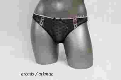 Urocze tiulowe figi damskie wykańczane koronką z kolekcji ATLANTIC linii ARCADO.