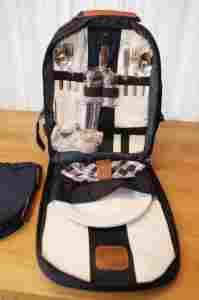 Plecak jest dwu-komorowy tzn. Jedna część Rozpinana sa suwak zawiera kompletne wyposażenie piknikowe (opis poniżej)