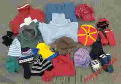W ZESTAWIE ZNAJDUJE SIĘ 22 SZTUKI ODZIEŻY TAKIEJ JAK :SWETERKI,CZAPKI,SZALIKI.