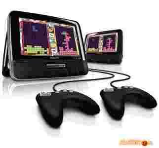 Oglądaj filmy i graj w gry w samochodzie. Odtwarzacz PD7032 firmy Philips wyposażony w dwa ekrany TFT LCD o przekątnej 7"/18 cm umożliwia oglądanie filmów DVD i DivX®, słuchanie muzyki i przeglądanie zdjęć. Dwa kontrolery do gier .